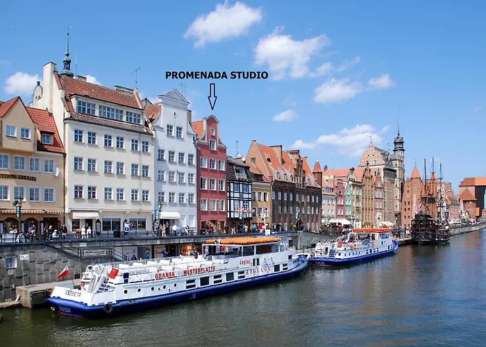 O apartamento fica a 250 metros de Fonte de Netuno e a cerca de 15 minutos de carro de Fortaleza de Wisloujscie. O local está a 10 minutos a pé do centro de cidade. Os hóspedes podem experimentar cozinha européia e polonesa no Latajacy Holender situado a 150 metros de distância. Promenada Studio fica próximo a Tribunal de Artus.