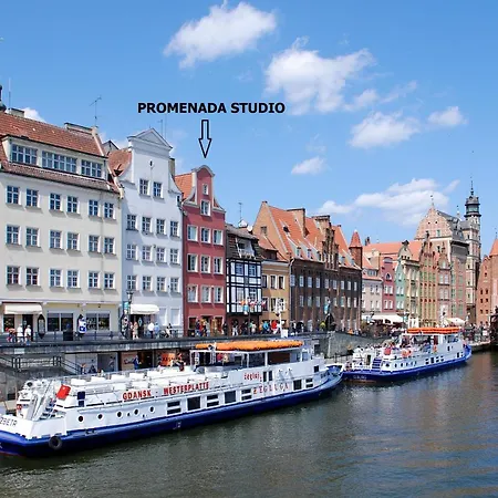 Promenada Studio dairesi, Gdansk şehrinin eski bölgesinde, Neptune's Fountain'a yakın yer almaktadır. Bu dairede ufak mutfak, özel bir banyo ve oda içinde çok kanallı televizyon, ayrı tuvalet, Wi-Fi gibi diğer konforlar bulunmaktadır.